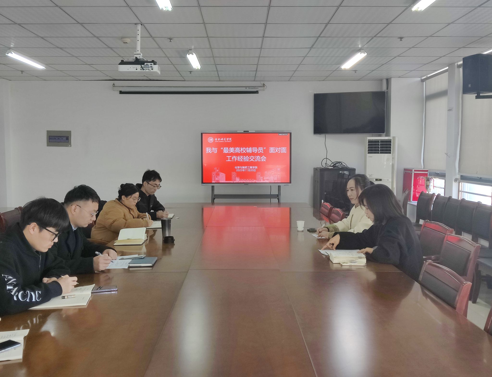 为进一步加强学院辅导员队伍建设,提升辅导员思政工作能力与品牌建设水平,11月20日上午,化学与制药工程学院在行知楼1402会议室开展“我与最美辅导员面对面”工作经验交流会,特邀“安徽省最美高校辅导员”“安徽省新时代青年先锋”称号获得者,安徽农业大学副教授彭琼琼担任分享嘉宾,学院全体专职辅导员参与交流。会议由学院党委副书记朱晓熠主持。