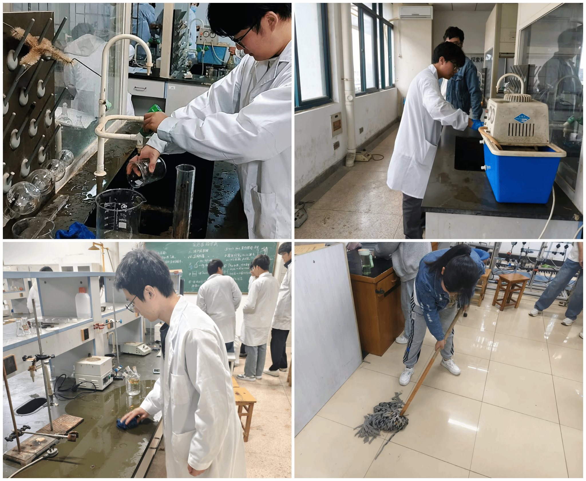 实验室里的“精细”劳动。学院充分发挥专业特色,将劳动教育深度嵌入实验教学与实践环节。学生们在教师指导下,系统地进行实验室器皿的规范清洗、实验台面的整洁维护、化学试剂的分类收纳与废弃物的安全处置。通过亲身参与实验室日常管理与维护,同学们不仅强化了安全规范意识和严谨细致的科研态度,更深刻体会到科研工作中基础性劳动的价值与不易。